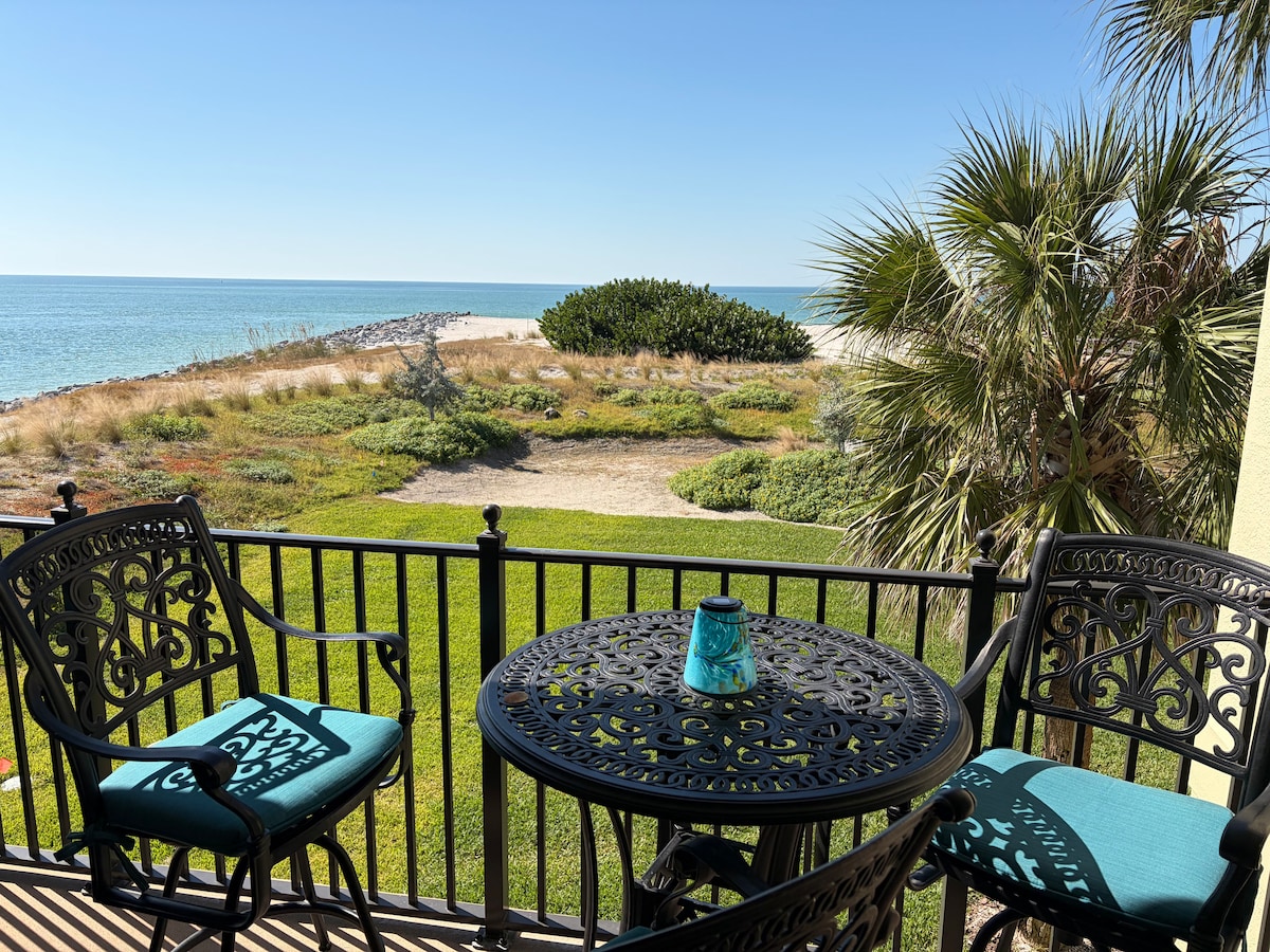 Beautiful 2 bed 1 bath luxury condo on the Gulf of Mexico. We are steps from the beach. Unit has partial water view. Beautiful state of the art kitchen and luxurious furnishings. Everything you need for your perfect vacation. Totally non-smoking unit. Come and stay with us. This is a second floor walk up condo. There are 27 steps. May not be suitable for the elderly or small children. Check in 3pm. Check out 10am Our maximum occupancy is 4 people including children.