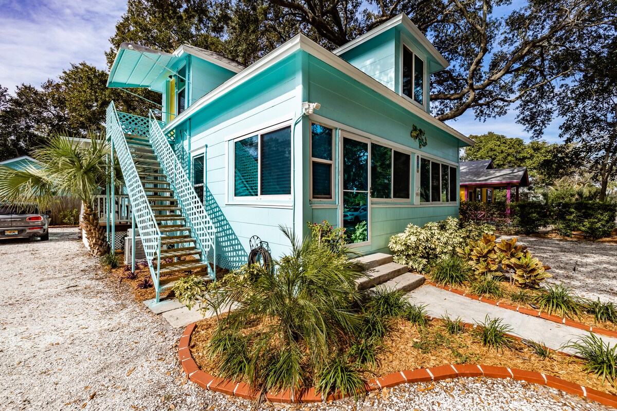 Relax, reconnect and revitalize in this private, intimate cottage that has everything you need to leave the hustle and bustle behind. Surrounded by lush tropical vegetation in the shade of giant live oaks and located in the Gulfport Arts District, you're a short walk or bike ride from excellent urban parks, restaurants, live music, fashion and art boutiques, dancing at the Gulfport Casino, community theater, and a beautiful beach that looks out over sailboats moored in Boca Ciega Bay.