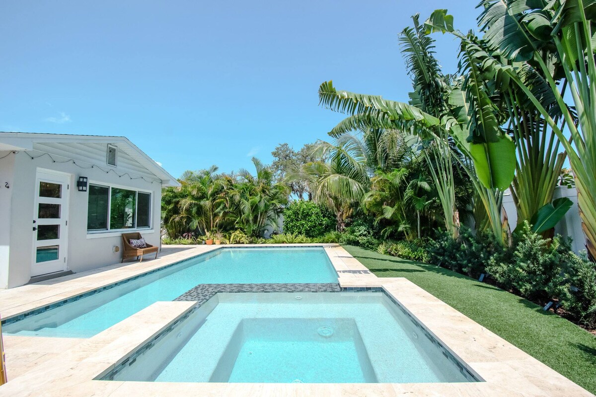 The true gem of Treasure Island! Tucked right off of Gulf Blvd this is one of three stylish studio units nestled in a coconut palm-fringed private courtyard with a residential cottage onsite. This cozy spot overlooking a lush tropical garden is just steps from a white sand beach & walking distance to dozens of laid back beach bars, live music & dining. Please note: There’s no guest parking on-site, but paid parking is nearby as well as a frequent public trolley.