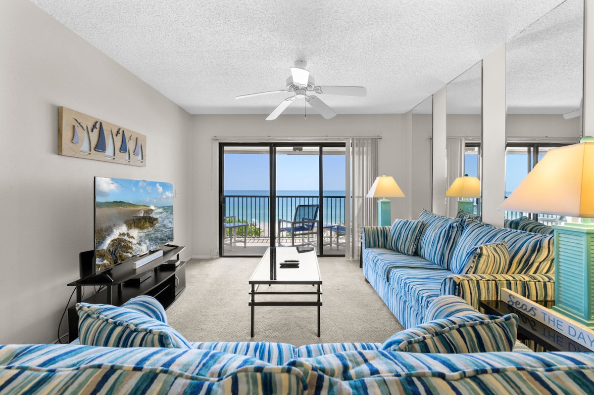 Our condo has spectacular water views from the Bay to the Beach. We have a large one of a kind kitchen that is unique to our resort, with granite counter tops, hardwood cabinets, and all stainless steel appliances. Everything you need to prepare a meal is provided along with basic spices and condiments, Coffee, creamer, and sugar. The master bedroom has a new king size bed and walk in closet with all beach gear also available for your use. We have 2 - 50" flat screen TV's with cable as well.