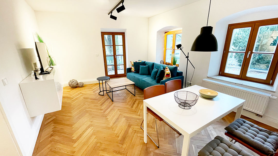 Our cozy gallery apartment in Regensburg's old town offers you the perfect starting point to explore the city and all other sights. Both bathrooms and the kitchen are newly renovated and offer everything you need. The open architecture gives the accommodation a special flair. Please note that the two rooms are connected by the stairs, and therefore not separated by a door.