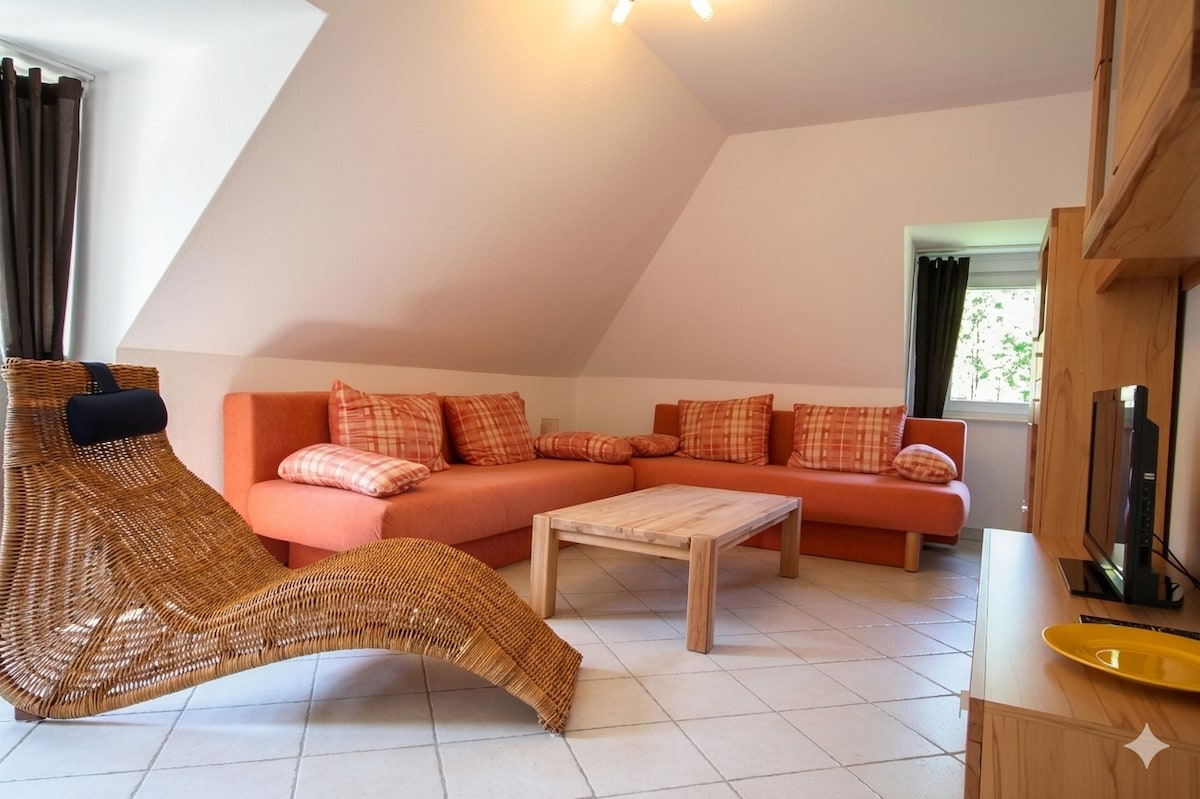 Liebevoll und durchdacht haben wir mit ganz viel Herzblut eine traumhafte Ferienwohnung auf 70 qm für 2 ( bis 4) Personen auf 2 Ebenen geschaffen- im lichtdurchfluteten Obergeschoss befindet sich der Schlafbereich. Bitte beachte, dass die einzige Tür die Badezimmertür ist- der Rest ist offen. Wir haben versucht möglichst nachhaltig, ökologisch und hochwertig zu bauen - die Farben sind von Kreidezeit, die Lacke auf Wasserbasis.