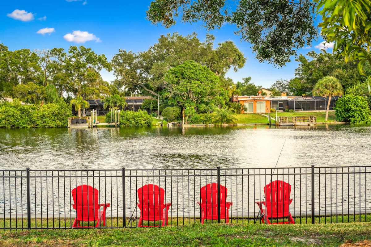 Welcome to On the Creek! Wake up to peaceful lake views at this tropical waterfront home featuring a heated pool, fire pit, and tropical palms. Spend your days swimming, fishing, or relaxing in the spacious backyard. Inside, enjoy a fully stocked modern kitchen and game room with a pool table, PS5, and foosball. Just 10 minutes from the beach, this family-ready getaway has it all - Book your stay today!