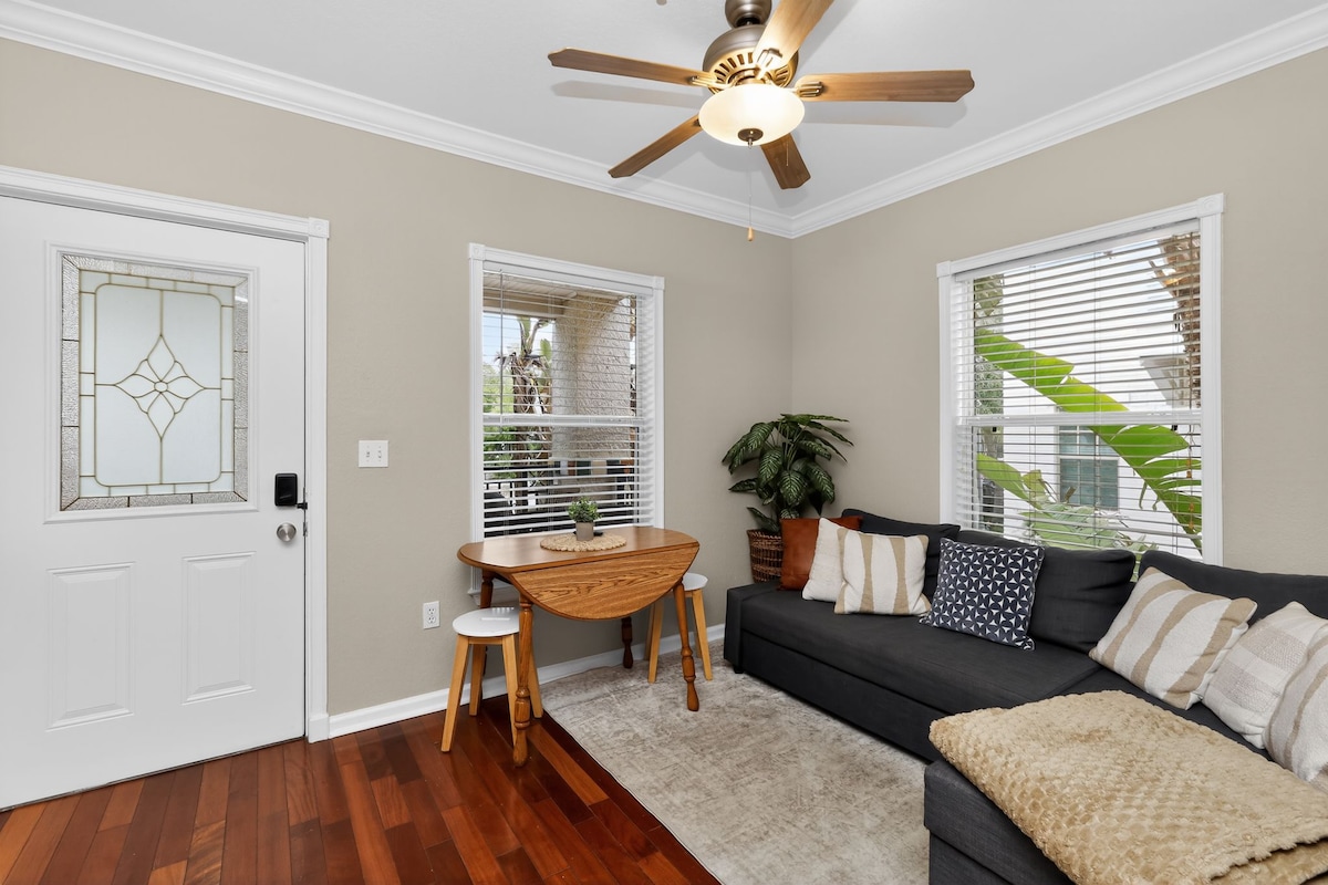 Escape to Mallory Square, a Key West–inspired apartment community with seven furnished units in the heart of downtown St. Petersburg. This apartment is ideal for comfortable 30+ night stays with all utilities included, high-speed WiFi, and a dedicated workspace. Enjoy a shared tropical courtyard, app-based laundry, and walkable access to cafés, dining, shops, and St. Pete Beach. Flexible month-to-month stays available.