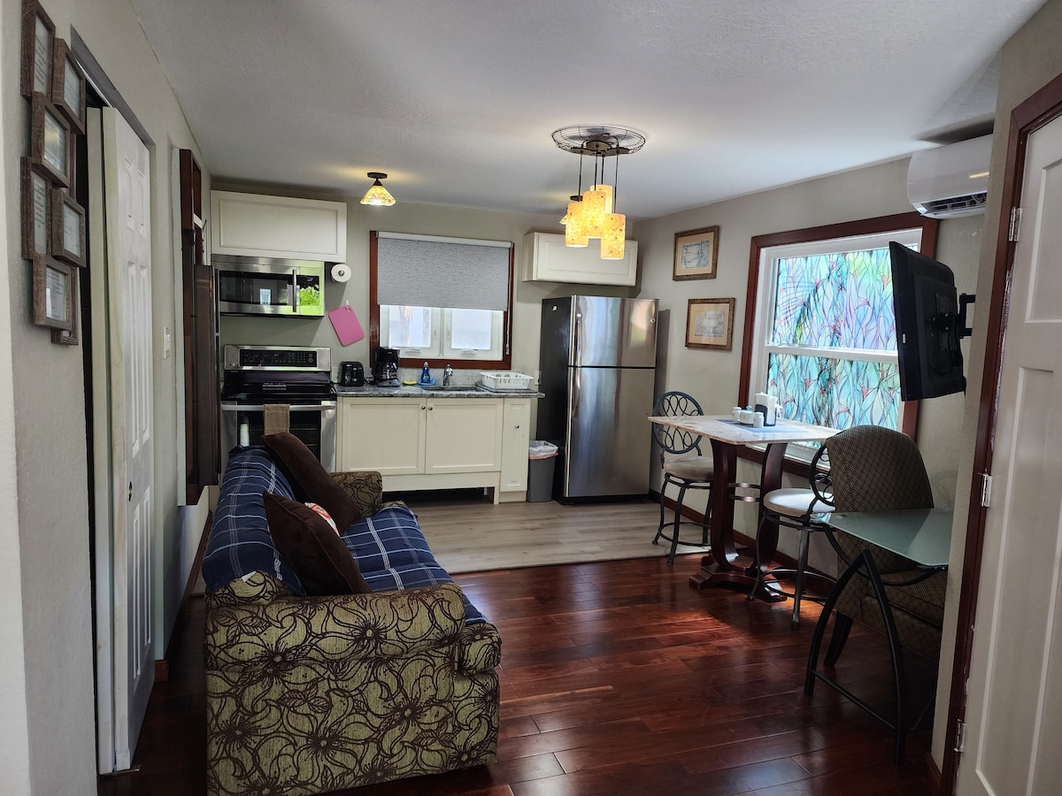 Take a break and unwind at this peaceful oasis.This stylish place to stay is perfect for two people. (air mattress available upon request if there is a 3rd guest). Only 7 min away from the downtown St Pete, this spacious studio is made for you and your family with all of the amenities needed for a relaxing vacation. It features a queen size bed and newly renovated bathroom, new Kitchen , patio outside for smoking, No parties allowed. No smoking 🚭in Pet's Allows