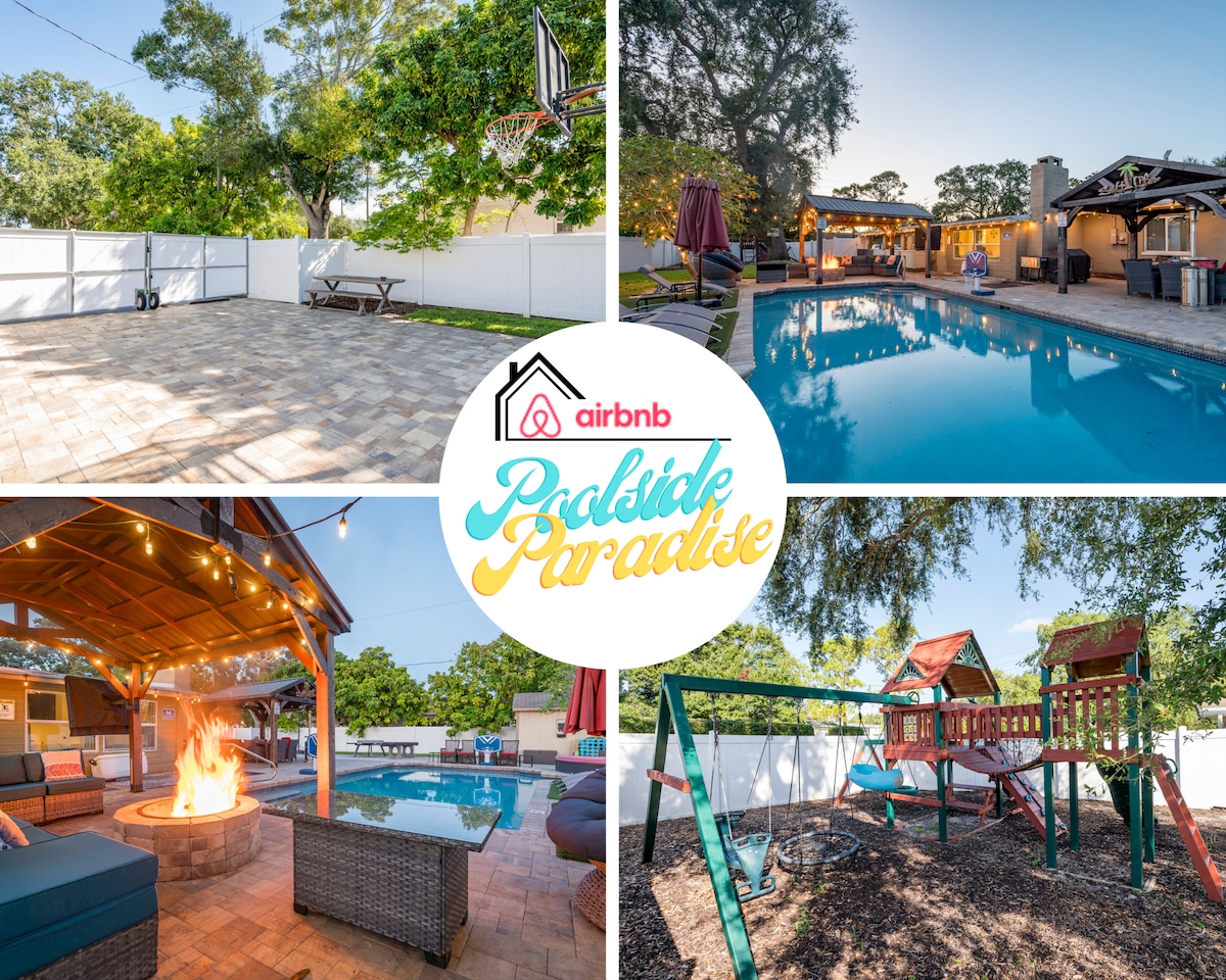 Kick back and relax in this calm, stylish beach-vibin home. The 2 bedroom plus queen size sleeper sofa in sunroom is the perfect spot to get away and never have to leave. Enjoy your morning coffee or afternoon cocktail lounging by the fire pit. Light up the grill and cook your meal while you enjoy a pool heated to 86 degrees for free! Wifi and 3 streaming TV's. If you want to get out and explore, you are only 6 minutes from the award winning beaches and 25 minutes from downtown St Pete.