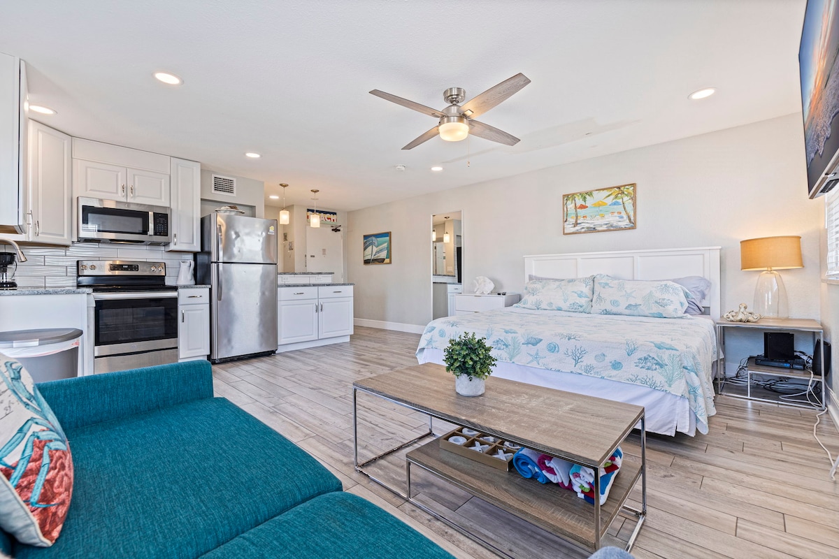 NEWLY FULLY RENOVATED breathtaking beachfront condo on private beach. Walking distance to bars, restaurants, live music and more! Brand new king size bed, high speed wi-fi, Smart TVs with cable/Netflix, heated swimming pool, BBQ/Grills, outdoor tables, showers, beachfront balcony, workspace and you are RIGHT on the beach! Short drive to TPA/PIE airports, Downtown St Pete, Dali Museum & more! The condo is fully equipped with everything you need and run by a Superhost for a perfect Beach vacation!