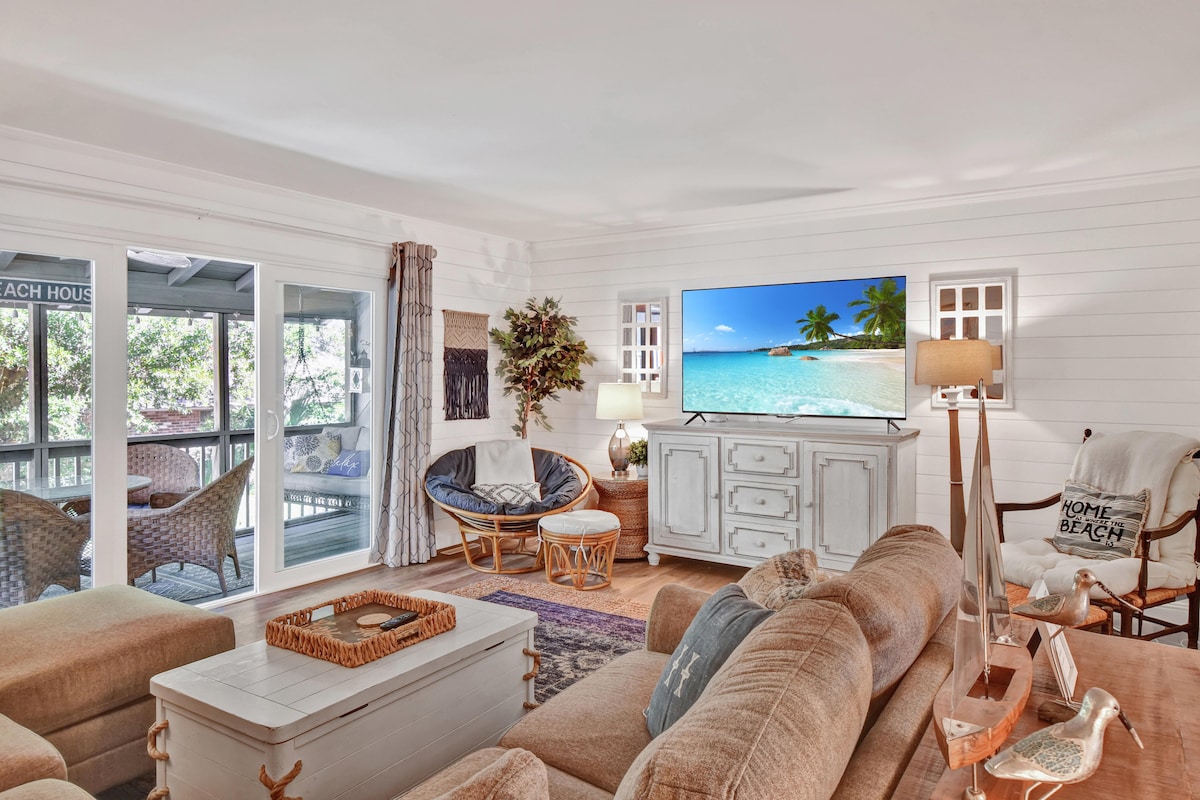 Bring the pups and relax to the sounds of waves crashing just steps from your door! A quick five-minute walk to the world-famous Driftwood Beach (ranked the #1 beach in the US by Travel Guide), the Tipsea Turtle is a dog-friendly two-story condo with two bedrooms and one bathroom located on the second floor. Beautiful views of the gorgeous green space with walking trails from the primary bedroom, open kitchen, and spacious living room make it feel like you're somewhere tropical.