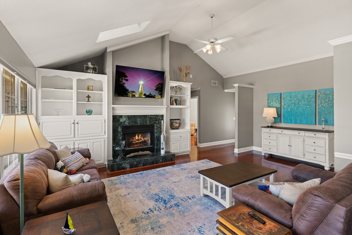 The Freddie is a newly updated 3-bedroom, 3.5 bathroom coastal cottage style home. It comprises: an open floor plan that has the kitchen with island seating for 3, dining table for 6, and living room with a fireplace. There is a beautiful screened in porch with ample seating for relaxing. The master bedroom with a king bed is on the first floor. Upstairs you will find a sitting area with coffee station, a bunk room that sleeps 5, and a king guest bedroom. All bedrooms have ensuite baths.