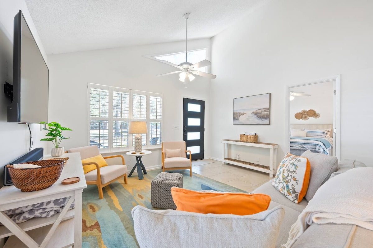 If you want to lay down at night & not hear blaring music or kids partying, this is your spot. If you want to bring your dog on your trip & let them out in the backyard, this your place! I purchased & renovated in 2020 with a new kitchen, new appliances & fresh paint throughout! My cheerfully decorated 2 bedroom, 2 bathroom tabby cottage is enveloped in a canopy of live oaks & spanish moss. The neighborhood is child friendly & safe. The back porch is cozy with romantic lights!