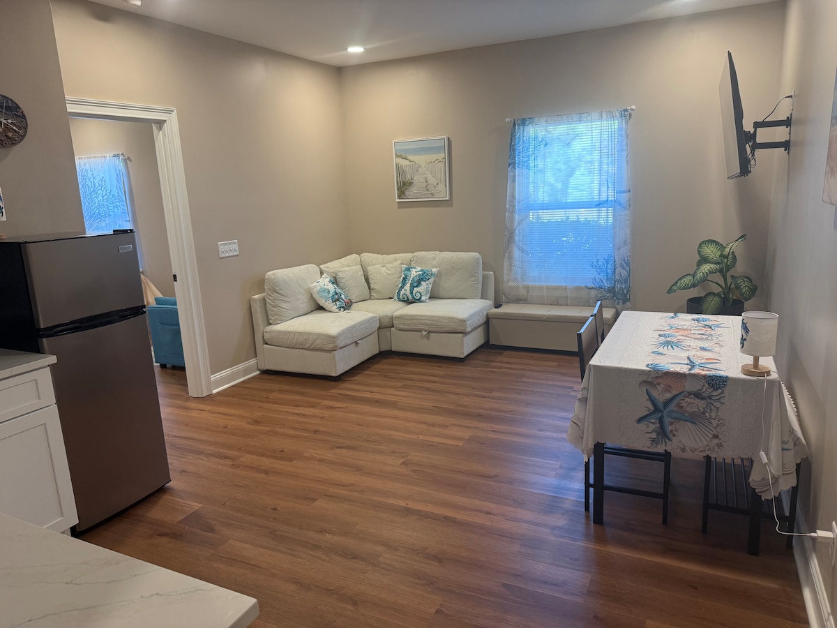 Escape to The White House, a charming restored cottage on 4+ wooded acres with stocked ponds. This cozy 1-bedroom, 1-bath retreat sleeps 5 and features a king size bed, fold out sofa and twin size sleeper lounge. Fully equipped kitchen with all of the modern comforts of home including your own washer and dryer. Just 10 minutes from St. Simons and Jekyll beaches, enjoy peaceful country living near Brunswick’s shops, dining, and coastal fun.