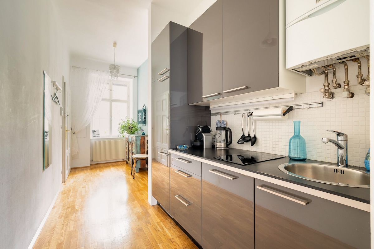 My perfectly located (just 10 min. walking distance to the 1st district) 72 m2 (= 720 sq ft) modern apartment is very sunny with huge terrace doors and beautifully furnished. Everything is easily accessible by public transportation; the U1 (underground) is just 2 min. away. You have full access to the entire apartm, incl. dishwasher, laundry machine, WiFi and cooking utensils Entrance hall, open kitchen (NESPRESSO machine), dining/living room, bedroom, bathroom, separate toilet + free parking