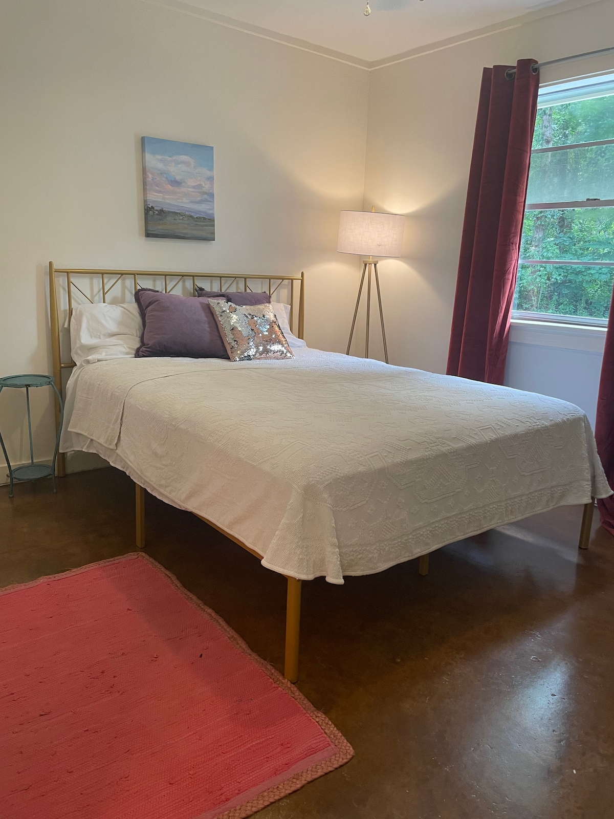 Quiet, safe, peaceful, cozy 1 bed/1bath with kitchen. Perfect for traveling, horse shows, work, or transitioning. Low stress, no traffic, slow, quiet ,clean environment to work or unwind. This is one of 8 apartments nestled on 1 acre surrounded by woods in the village of Folsom La. Full kitchen & wifi. Front and back door entry. Common yard is a sweet place to take enjoy the fresh air. Check out the guide book for things to do in the area. Monthly stays available.