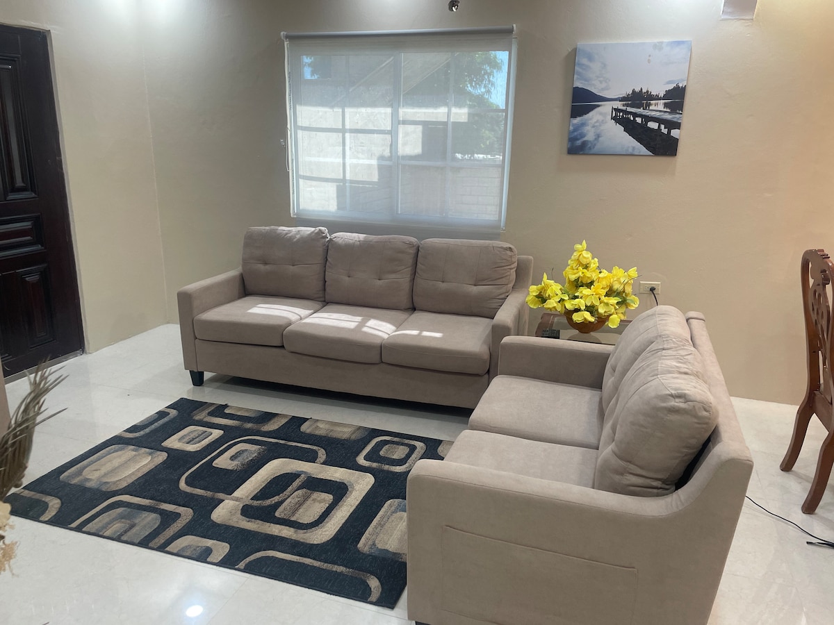 Bring the whole family to this amazing place of relaxation and comfort. This accommodation is located in the peaceful community of Albion; only 25 minutes away from the Norman Manley International Airport. This lovely 2 A/C fitted bedrooms home is equipped with modern state of the art furniture, kitchen appliances and hot water in bathroom which all provide a comforting feel of home away from home. Binge watch on 2 smart TVs and free Wi-Fi or enjoy mother nature on the front or back verandahs.