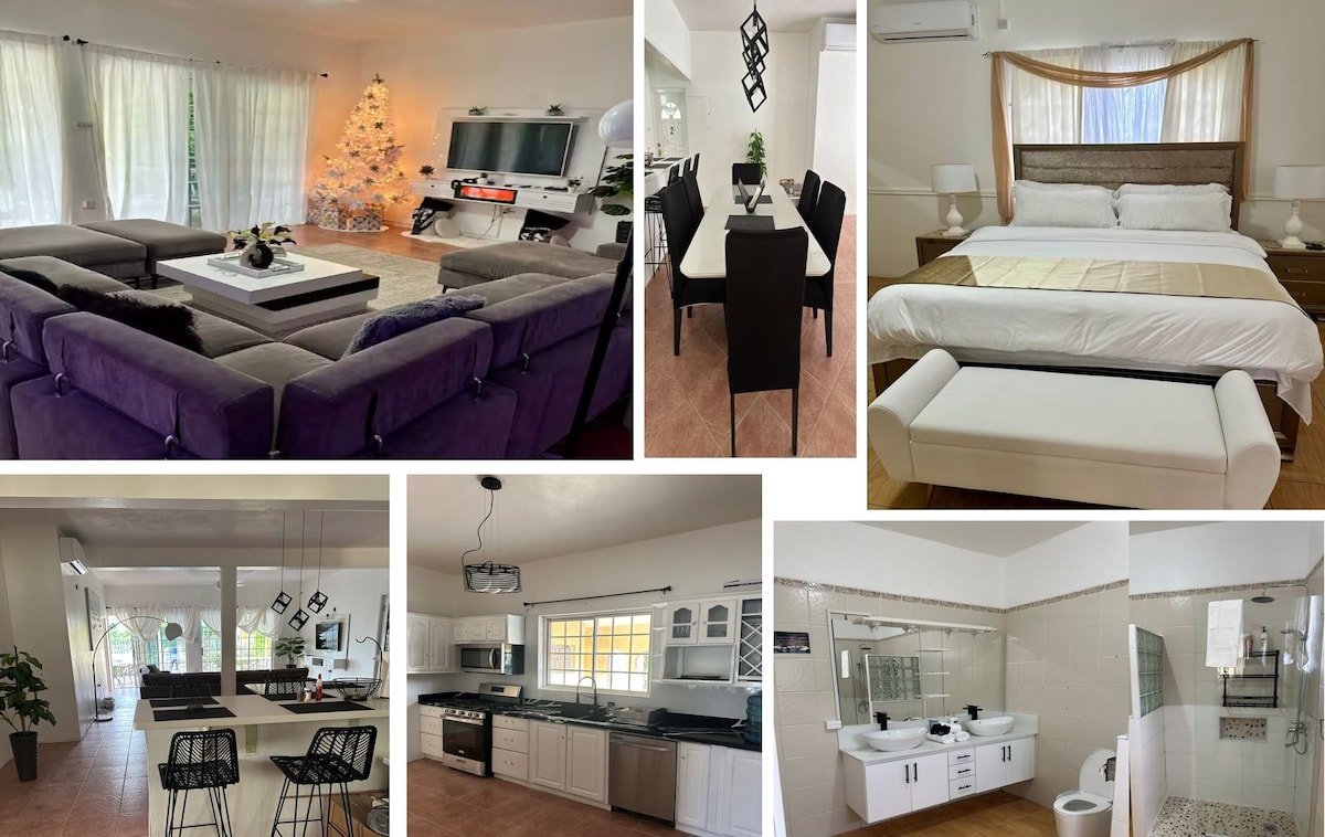 Forget your worries in this spacious, open, comfortable, newly renovated, fully air conditioned, modern and serene space within walking distance of ocean. Albion, St Thomas. Only approx 20 mins E of Norman Manley Int'l Airport. Fully-furnished private residence. All the amenities of a home away from home. All brand new - TVs wifi internet enabled smart (55" in living room, 42" mstr, 32" in other 2 bdrms). - Amazon Fire Stick - ACs - 52" large 3 speed remote controlled ceiling fan lights.