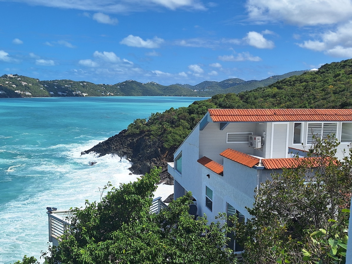 Tranquil and Secluded. Fortuna Hideaway is at the very West End of St. Thomas. The front yard has 180 degree views of the Caribbean Sea and the backyard is nestle with vegetation where deer roam freely at dawn and dusk. See Botany Bay and the islands of St. Croix, Vieques and Culebra in the distance. Be the first to see the cruise ships as they make their way to port and the airplanes just before they land. Best spot to enjoy gorgeous sunsets and to get away from it all!