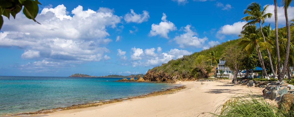 You'll enjoy your time at this cheerful getaway.This beachside location is nestled in a cove fringed by waving palm trees. It’s the perfect escape for anyone with a sense of adventure looking for music and fun on your next vacation. Or if you’re dreaming of a more laid-back experience — grabbing that beach chair, kicking off your flip-flops, sipping a margarita while looking out onto an expanse of fine white sand, crystal-clear waters and St. John island in the distance.