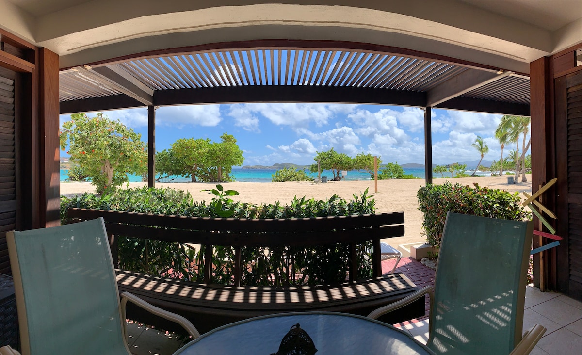 "H2Oh What a Beach!" condo Building A of Sapphire Beach Resort & Marina: ground floor unit with direct access to one of the most beautiful beaches in the Caribbean. Steps away from Sea Salt fine dining restaurant, Sapphire Beach Bar, Paradise Pie pizza, and Beach Buzz coffee shop. A mile from Red Hook featuring many restaurants & island ferries. Great beach, swimming, snorkeling, parasailing, and relaxing right outside your door. Be among the many visitors who LOVE this totally renovated condo.