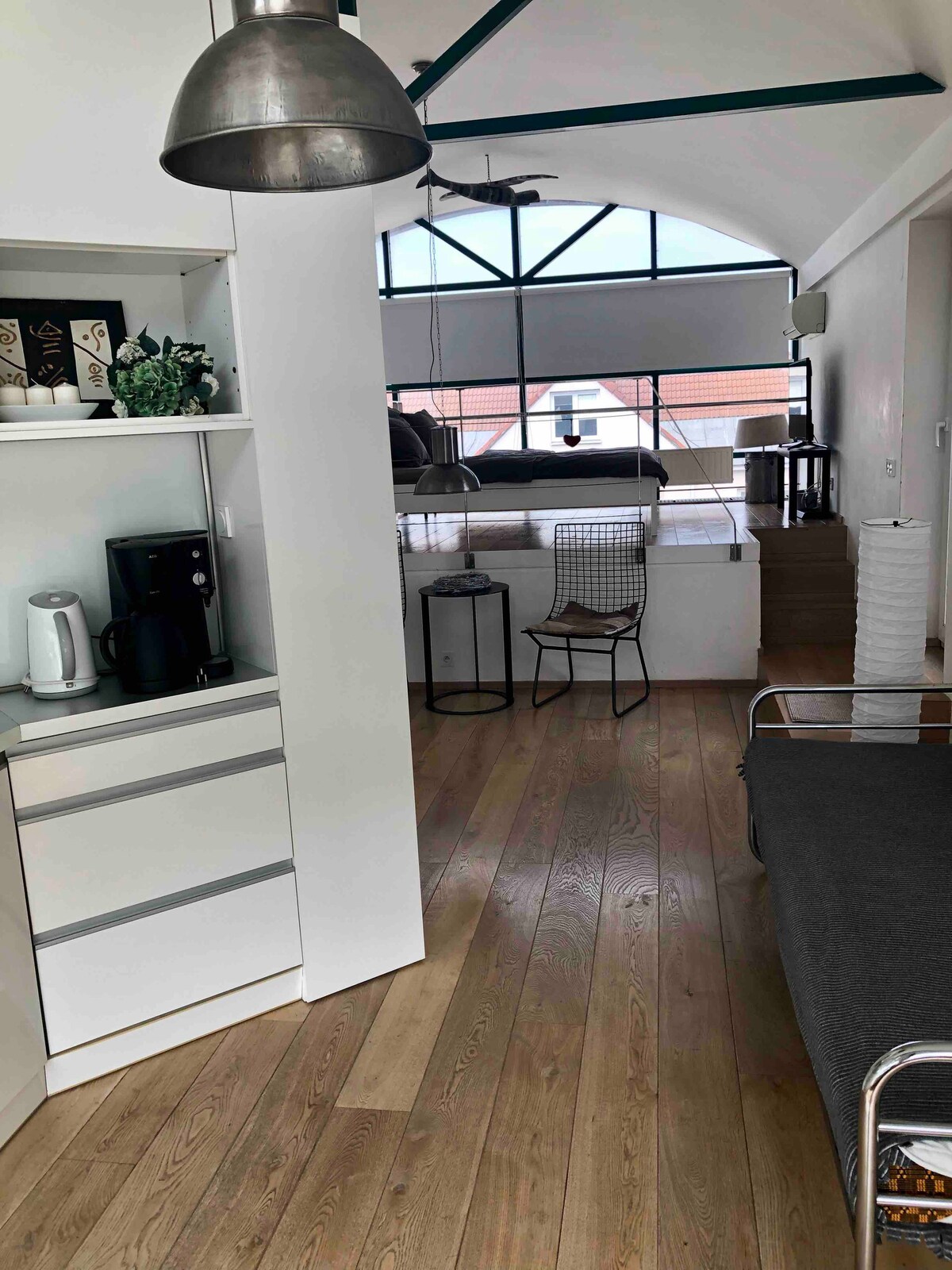 This centrally located loft is very spacious (130sq meters) and the windows bath each room in light, however, blinds in the living room and black out blinds are on the windows in the bedroom to ensure a proper rest. Please note that the common premises are being renovated with the scheduled end of works by mid October 2024. There is no noise associated with the works.