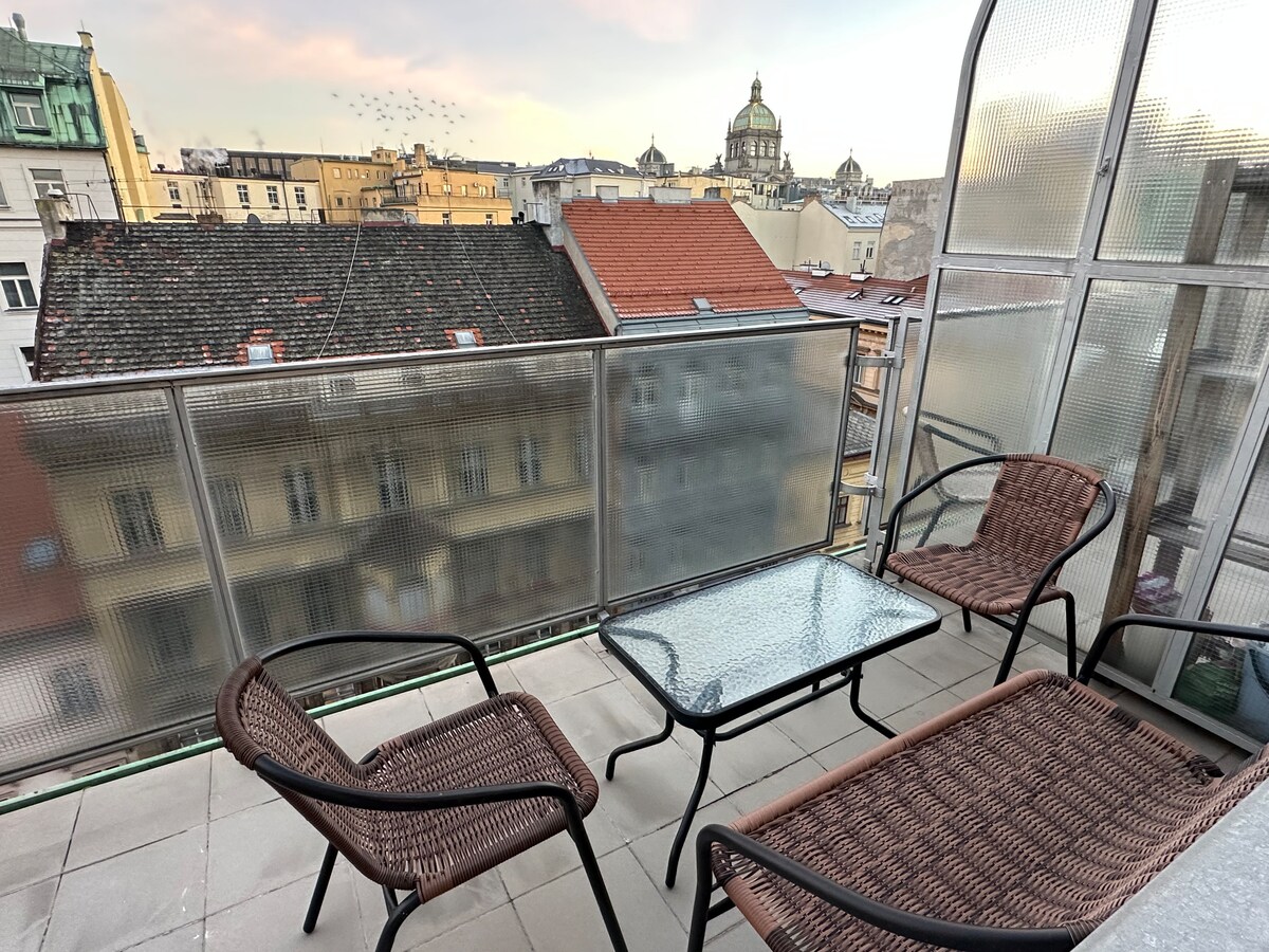 布拉格市中心豪华阁楼,带阳台和车库
