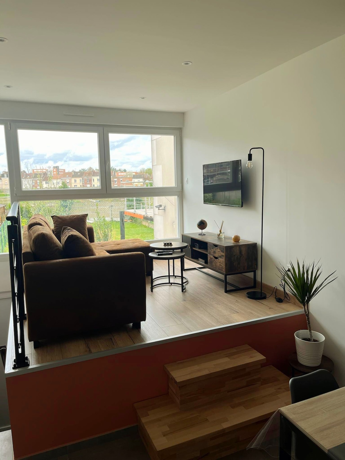 Détendez-vous dans ce logement calme et élégant. Situé a seulement 2 km du Louvre de lens et du stade Bollaert vous pourrais profitez d un beau studio plein pied style maisonnette de 40 m2 avec tout les équipement nécessaire pour passez un agréable séjour situé dans une residence sécurisé avec une place de parking.