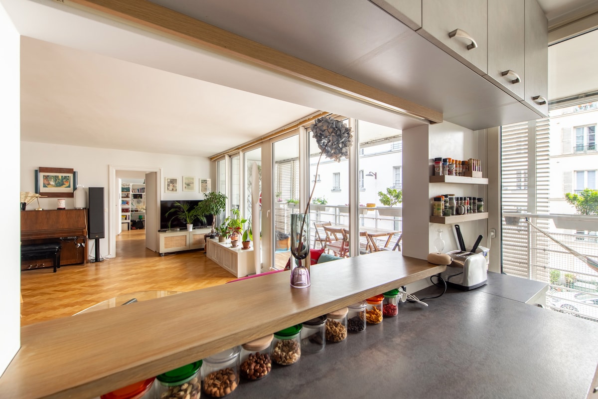 Apartment in le Haut Marais with a view on the Square du Temple Contemporary decoration, bathed in light, 3,80 m ceiling height. You are just nearby lots of different subway lines : République, Arts et Métiers or Temple are just 2 minutes away. This apartment is cleaned and disinfected with the ecological solution of Dry Steam Cleaning , certified for its bactericidal, fungicidal, and virucidal properties.