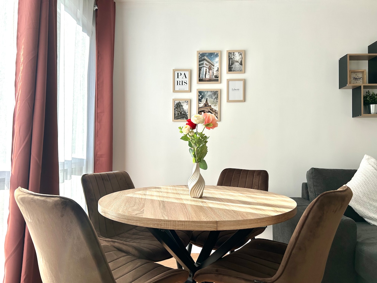 Ce qui rend notre appartement unique, c’est avant tout la proximité immédiate du stade de France, qui est à 50mètres seulement. ⚐ Le style de l'appartement a été pensé pour vous permettre de passer de supers moments: la table de salon est convertible en table de billard, air hockey, ou tennis de table. ❤︎ Vous pourrez vous divertir avec vos amis ou votre famille tout en profitant de la vue dégagée depuis le balcon sur la basilique Saint-Denis et le canal Saint-Denis, sans aucun vis-à-vis. ☼