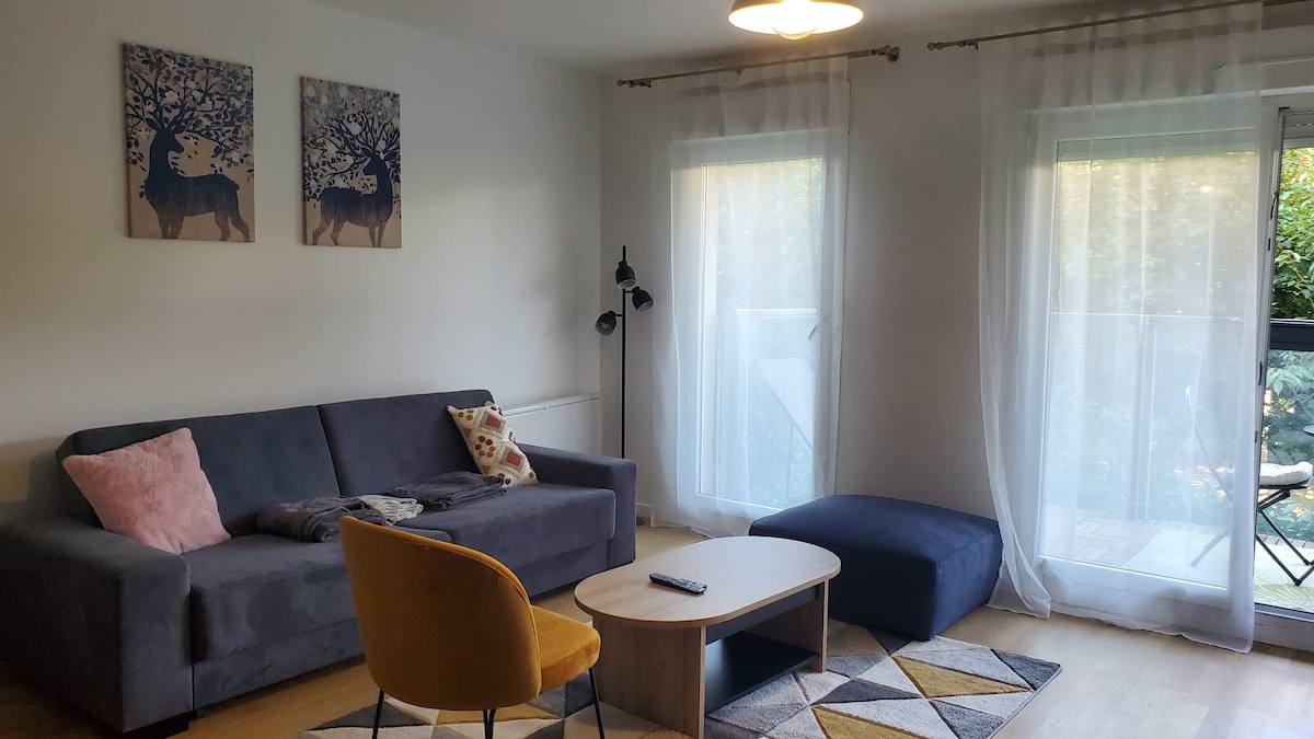 Welcome to our 40m² apartment, a peaceful haven renovated in January 2024, located in the heart of Porte de Paris in Saint-Denis. Just 1 minute walk from metro line 13 and 10 minutes from the Stade de France, my place can accommodate up to 4 guests. Exclusively for you: a fully equipped kitchen, a modern bathroom, and a cozy living space. 🤩 Note: Due to recent water damage, part of the living room ceiling has been affected. Repairs are scheduled. Marc & Estelle