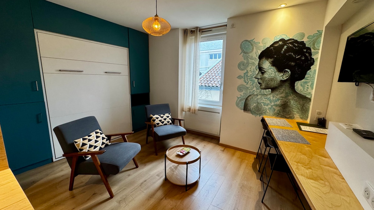 Bienvenue dans un joli appartement de charme lumineux situé en plein centre, à deux pas de la cathédrale. Cet appartement combine le charme de l'ancien et le confort (WIFI, cuisine équipée). Coloré et contemporain, il a été décoré dans l'esprit brocante. Situé à moins de 15 minutes à pied de la gare, c'est l'appartement idéal pour découvrir la ville le temps d'un week-end ou y séjourner plus longtemps. Les draps et serviettes sont fournis