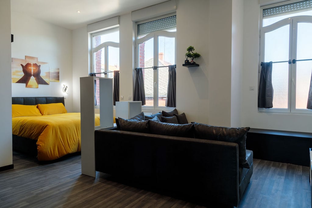Un hébergement spacieux et raffiné se trouvant dans un quartier résidentiel calme de Valenciennes, à quelques minutes seulement du centre-ville. Grâce à ses trois grandes fenêtres à double vitrage, l’espace bénéficie d’une belle lumière naturelle tout au long de la journée. Aménagé avec soin et entièrement équipé, ce logement est idéal pour les voyageurs d’affaires, les étudiants ou les couples en quête de confort, d’autonomie et de praticité.