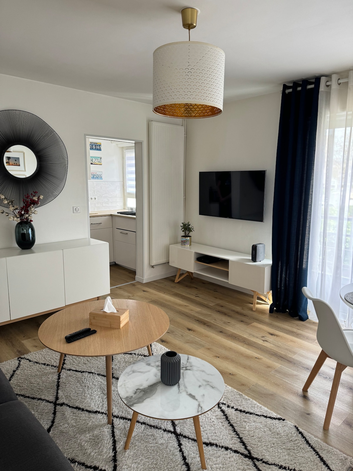 Grand studio (cuisine séparée) de 34m² à 3 minutes à pied de la gare, joliment décoré, dans une résidence calme et sécurisée, avec tout le confort nécessaire. Classé 2 étoiles depuis janvier 2022. - NON-FUMEUR - 🚭 Nous prenons un soin tout particulier au nettoyage et à la désinfection des locaux, et notamment des zones les plus à risques . De plus, L'appartement est laissé libre et aéré au maximum avant chaque location.