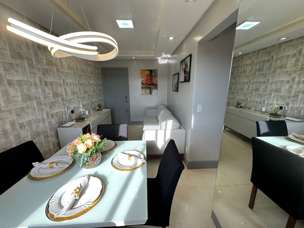 Lindo apartamento cheio de estilo em condomínio fechado px. ao centro de Criciúma. Acomoda até 6 pessoas em três quartos climatizados com Split, 1 colchão de solteiro extra. Possui Smart-TV c/ Streaming e + de 40 mil canais, séries, esportes e filmes. Wi-fi grátis, ar-Split e ventilador. O Ap é equipado com os principais eletro-eletrônicos úteis e espaço para churrasco. A garagem é privativa e fornecemos roupas de cama, mesa e banho, produtos de limpeza e higiene pessoal. Ótimo custo-benefício!