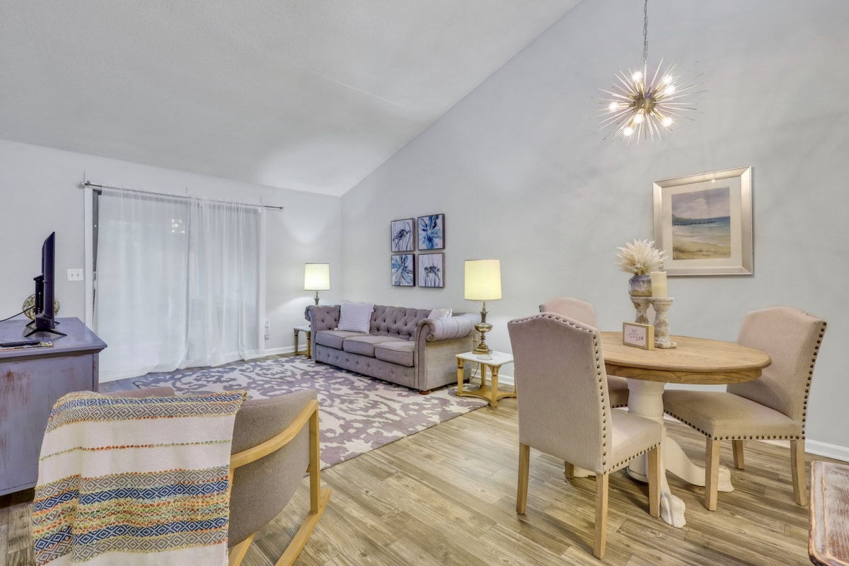 Welcome to your boho beach retreat in Fernandina Beach! This updated 2BR, 1.5BA condo is just 2 blocks from the beach and minutes from downtown. Ideal for families or remote workers- enjoy fast Wi-Fi, a workspace, and peaceful outdoor spaces. Relax by the pool, play tennis, or explore Fort Clinch and nearby trails. With new furnishings, a full kitchen, and cozy bedrooms, your stay offers comfort and convenience within earshot of the ocean waves! ⭑CONTACT US FOR SEASONAL DISCOUNTS⭑