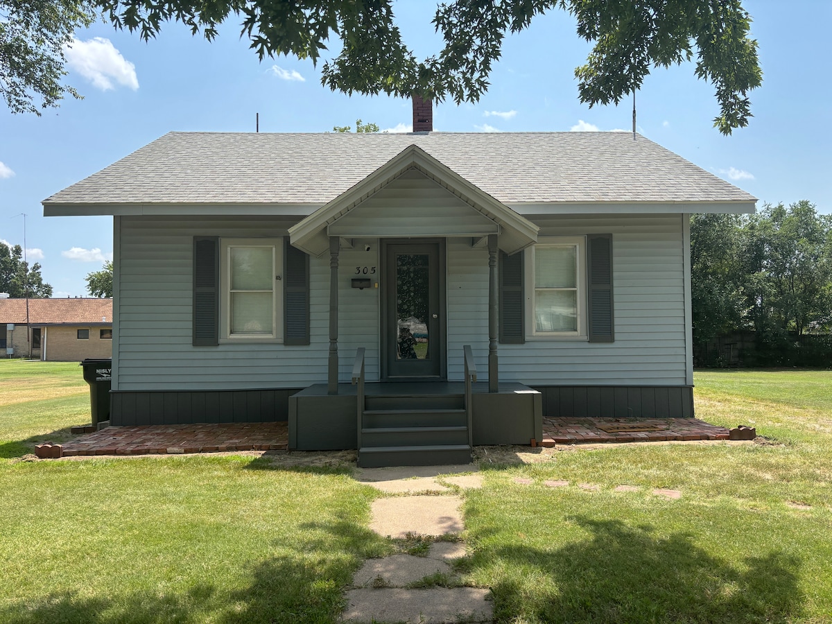Welcome to your home away from home in the heart of small town Kansas! This spacious 4 bedroom, 3.5 bathroom home is located on a quiet corner lot just one block from the town square and library. With two comfortable living areas, a formal dining room and a fully equipped kitchen there’s plenty of room for family or friends to relax and unwind. Grab a morning coffee, enjoy authentic Mexican cuisine or pick up a pizza all just a short stroll away.