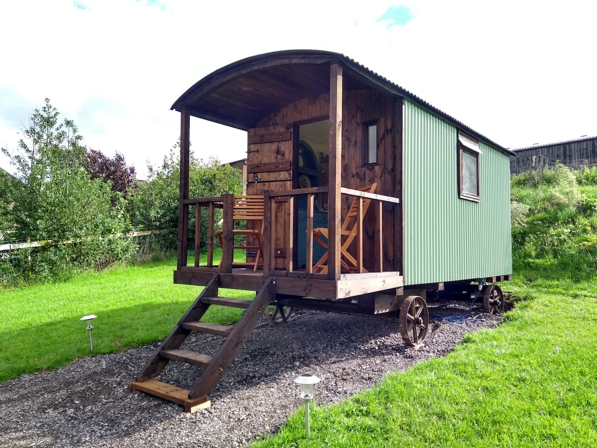 Enjoy the lovely setting of this romantic spot in nature, with far reaching views of the Peak District National Park. Brand new, luxury, fully self-contained Shepherd’s hut, set in its own private area on our farm with outdoor seating area, fire pit and parking. Fully fenced and gated to provide a safe area for your four legged friend should you choose to bring them with you. Wonderful scenery and walks from the door, with popular towns of Buxton, Leek and Ashbourne all a few miles away by car.