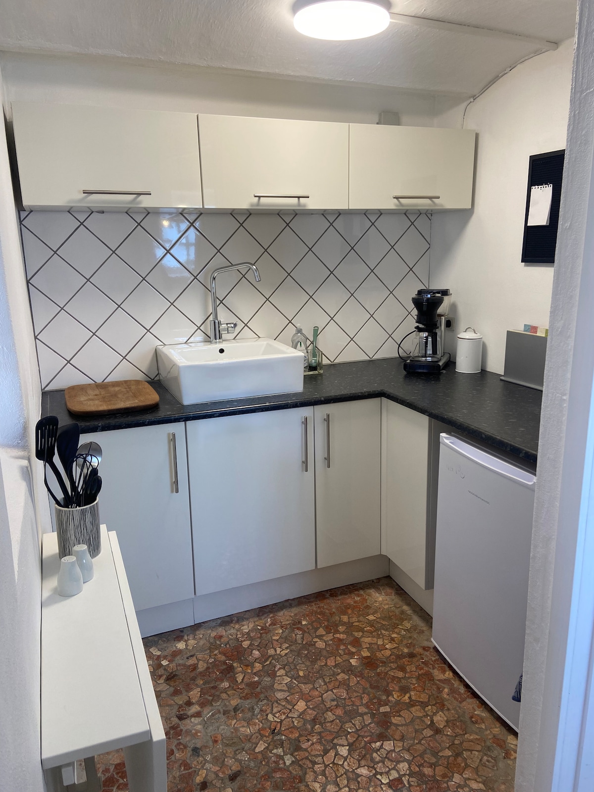 Nyd din ferie i et af vores 8 skønne tiny houses. Fra dobbeltsengen har du udsigt til fjorden og idylliske Bjerregård Havn. Du kan lave din egen morgenmad i det lille tekøkken med 2 kogeplader og køkkengrej, eller du kan bestille morgenmad ved os (mod en merpris) Nyd solopgangen med dampende varm kaffe til synet at tusindevis af trækfugle ved fuglereservatet Tipperne. Vil du til Vesterhavet er den kun 15 minutters gang væk. Sengelinned og håndklæder er inklusiv i prisen.
