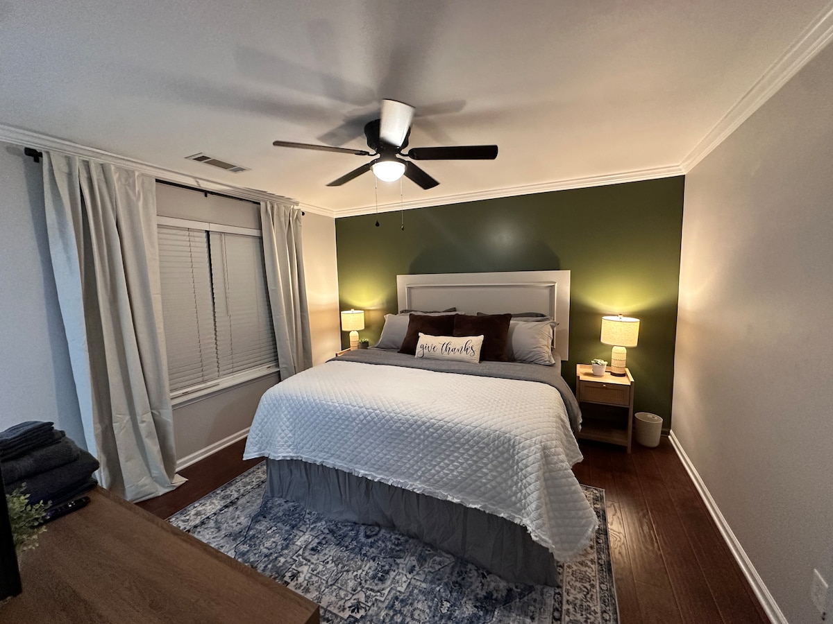 ⭐A Hidden Gem tucked away on a dead end St. in an est. NBD of Historic DT Matthews! The Dwellington has Southern charm w/ a wrap around covered patio, a screened-in porch & a garden view! This spacious guest house has 9ft ceilings, a well thought out floor plan & a relaxing spa like bath. Easy walk to shop, sip, & dine! Come experience all our adorable Town has to offer! Small Town feel with Big City convenience! MULT ways to drive or ride to UPT CLT in less than 25 minutes. Book now and enjoy!