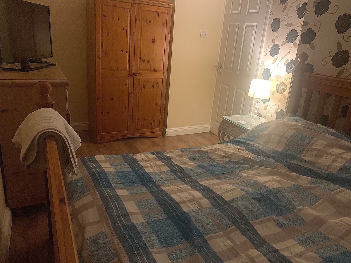 3 floors, 3 bedrooms + sofa bed in dining room Top floor: 1 double room with ensuite+kitchenette Middle floor: 1 double room 1 single room Family bathroom Ground floor: Dining room with double sofa bed Lounge Kitchen 3 smart TVs Fast WiFi Free parking on street 24 hour shop at end of street Just off the A14, 50 minutes to London by train. Close to all local amenities, shops, restaurants, bus station, railway station, Wicksteed Park.