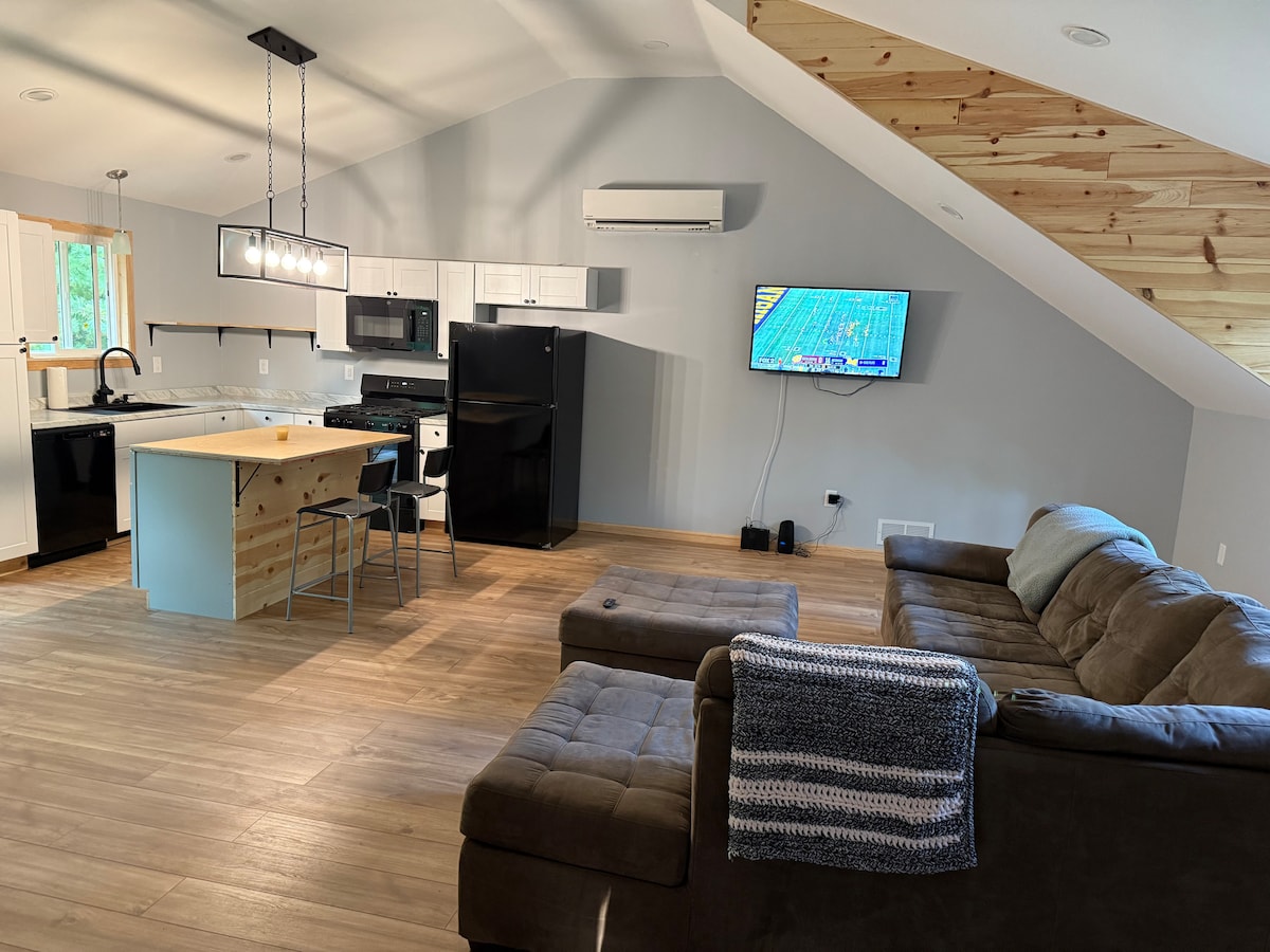 You'll LOVE this beautiful modern cabin! Steps away from Little Long Lake, with lake access given to all three lodges, owned by Jasper Pines. You'll enjoy a huge outdoor entertainment area with picnic table, firepit, cornhole, and darts. Everything you need to make your favorite tea, coffee and espresso drinks. Coffee grinder burr mill, too! Wanna Cook? Bake? You'll have everything in the kitchen at your fingertips. Park your ORV onsite! Kayaks included! Perfect for your romantic getaway!
