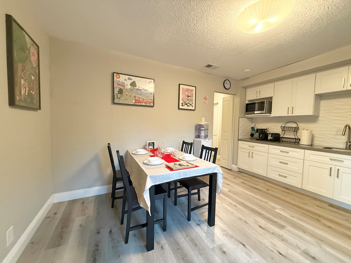 BEST Airbnb: Style, Comfort, Location. Airbnb fees and TOT taxes are paid by host, not guest. 1 bedroom, gorgeous bathroom, full kitchen, coffee machine, well-stocked pantry, dining set, comfy sofa & ottoman. Luxury shower: rain, cascade or handheld. Mirror with backlight. Nest heater. Hardwood floors. Portable Dyson aircon. Private entry. Automatic entry lights on walkway, wisteria trellis. Dedicated parking. Organic vegetable and fruit garden. Patio.