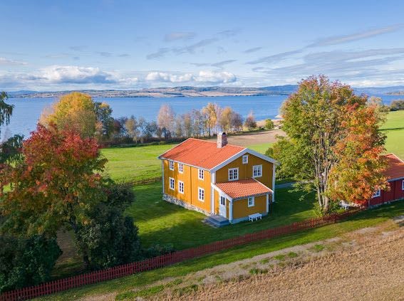 The house is charming and cozy and located right next to Mjøsa. Here you can wake up listening to the waves from the lake and see beautiful sunsets at the evening. Mjøsa is Norway's larges lake with great fishing. The house have a 120 meter private shore with a beach in the end. Perfect for kids (see picture for equipment). The ground is 5000 sqm so you have a lot of outdoor space. The house itself is 69 sqm. Ground floor consist of:livingrom, kitchen and bathroom. 2. floor consist of 2 bedrooms