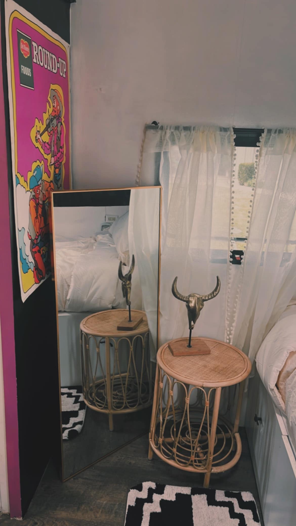 You won’t forget your time in this romantic, memorable place. Please note you must have a place to have this trailer parked. I do not have a place to park it for your usage so you must have a place to park it. I will be happy to deliver it with a fee per mile in California! :) The bedroom mattress is a queen size and very comfortable. The couch folds out to a bed. Full kitchen and bathroom. If another sleeping space is needed I have a comfortable fold up bed cot available for a small fee.
