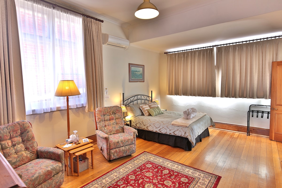 • Ye Olde Telephone Exchange (good for 2 persons) • Spacious, self-catering accommodation • Air Conditioners/Heat Pumps • Kitchen • 1 Private Bathroom • Tea/Coffee making facilities • Refrigerator • Microwave oven • Flat Screen TV • Stereo/DVD player • Hairdryer’s • Laundry • Seating Area • Centrally Located • Free Guest Wi-Fi • Free Private & Secured Parking