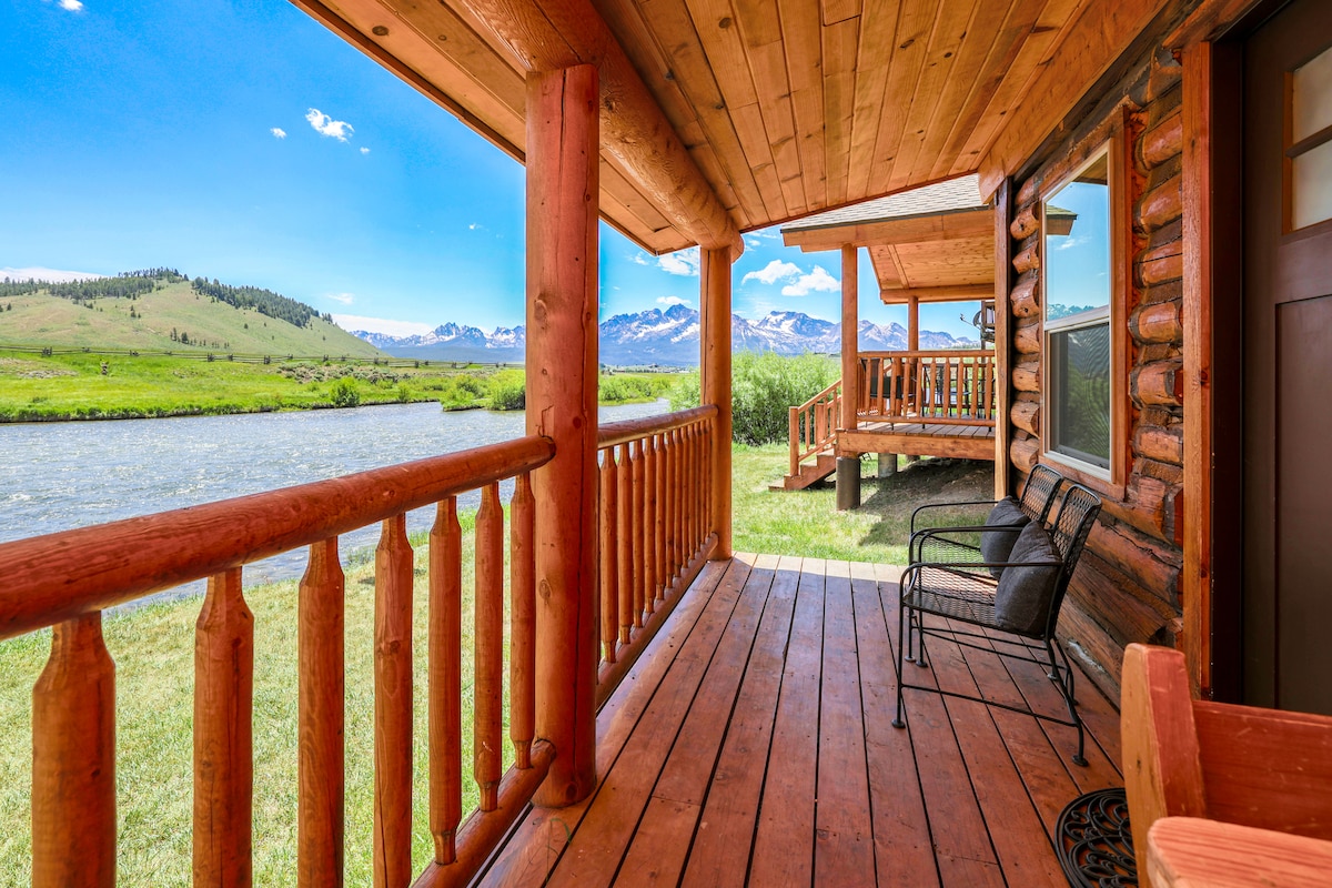 Escape to the Salmon River Suite, a beautifully crafted retreat along the banks of the Salmon River in Stanley, Idaho. This quality-built upstairs suite offers a cozy, inviting space for up to four guests, perfect for a relaxing getaway. It features a queen bed, a queen pull-out couch, and a full bathroom with a tiled shower and soaking tub. Enjoy amenities like WiFi, air conditioning, and a propane BBQ on the deck with stunning views just feet from the Salmon River.