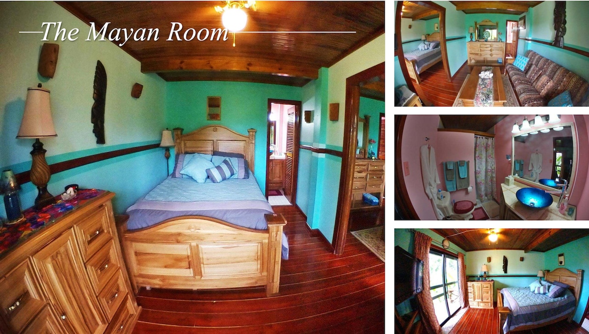 Situated at the front of our property, this queen room is a comfortable and modern unit with its own private bathroom and easy access for those with a personal vehicle. About 1/2 mile from the Hummingbird Hyw., with car parking available. Indoor shower and flushing toilet.