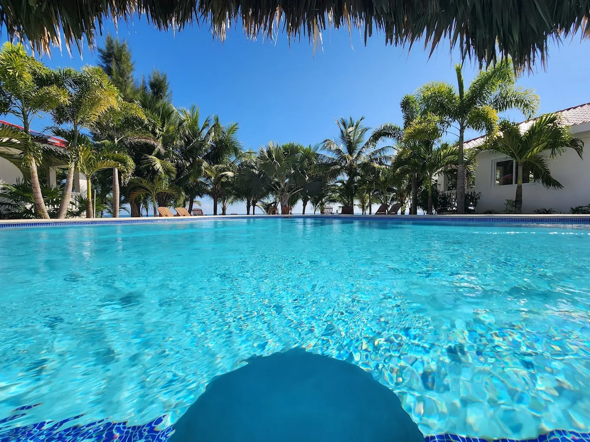 Luxurious Beachside Condo at Ceiba Beach Resort. Nestled within the resort's property, this modern one-bedroom condo offers comfort with a queen bed, kitchenette, private bathroom. PERKS! Welcome Drink upon arrival Timely Housekeeping Service. Swim up pool bar, Beach access On-site Dining at Mickey's Restaurant Private balcony with garden views and lounge seating. High-speed Wi-Fi, smart TV, and AC. Ideal for romantic getaways or solo travelers on a budget.