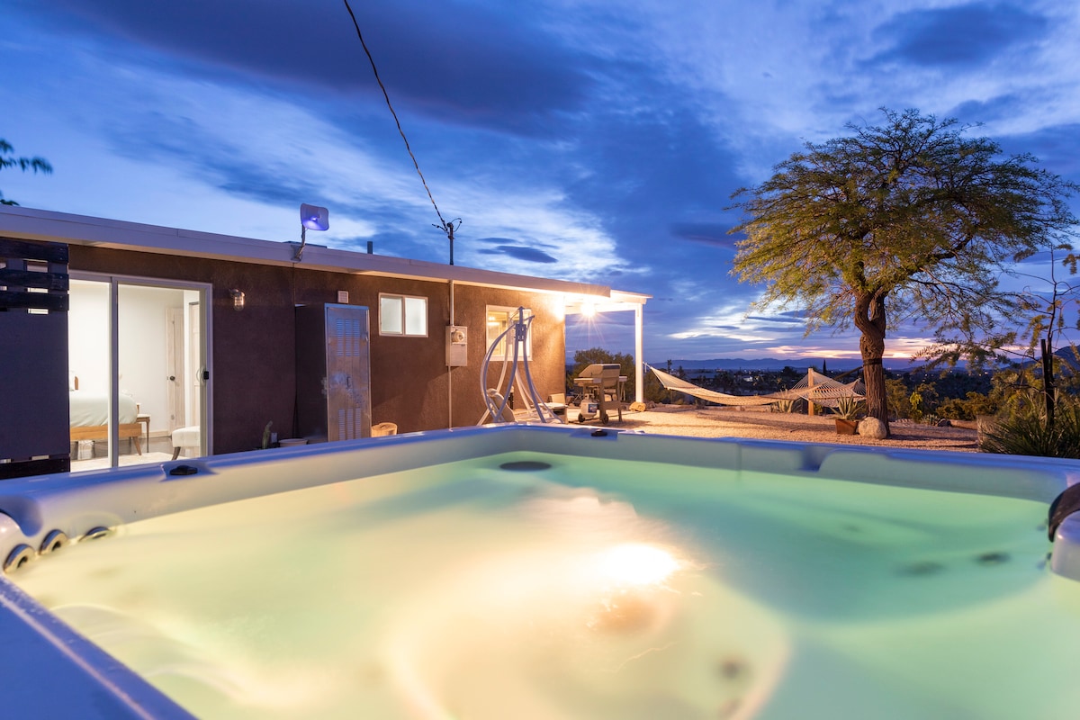 Spin vinyl under the stars at this cozy 5-acre desert retreat. Soak in the private hot tub, then kick back with hundreds of well-cared-for records on a vintage Technics turntable, Klipsch speakers, and Sony stereo. Stream your own tunes via Bluetooth or plug in with DJ-quality headphones. Enjoy a wood firepit, outdoor shower, hammock, grill with propane, washer/dryer, and epic stargazing. This is a high-fidelity desert escape—inside and out. Licence number: CESTRP-2020-00595