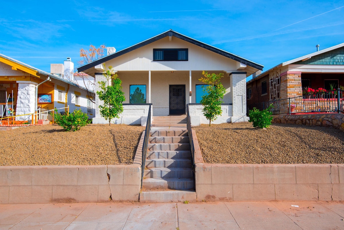 Beautifully maintained 1920's Craftsman Bungalow in historic, safe and walkable Dunbar Spring neighborhood. Quiet yet central, close to Stone Ave/4th Street, within a 5-10 minute walk or drive to downtown, UA, 4th Ave, stores, great restaurants and many other Tucson attractions. Spacious living room, king and queen bedrooms, fully equipped kitchen and inviting outdoor spaces. Enjoy coffee on the large porch and watch the birds. Plenty of free street parking in front of the house.
