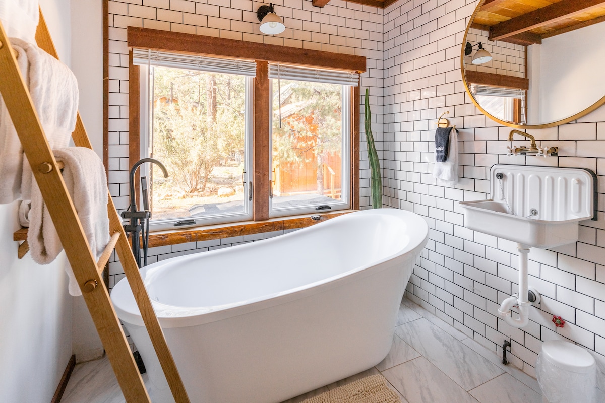 带浸泡浴缸的 Luxe 农舍度假木屋