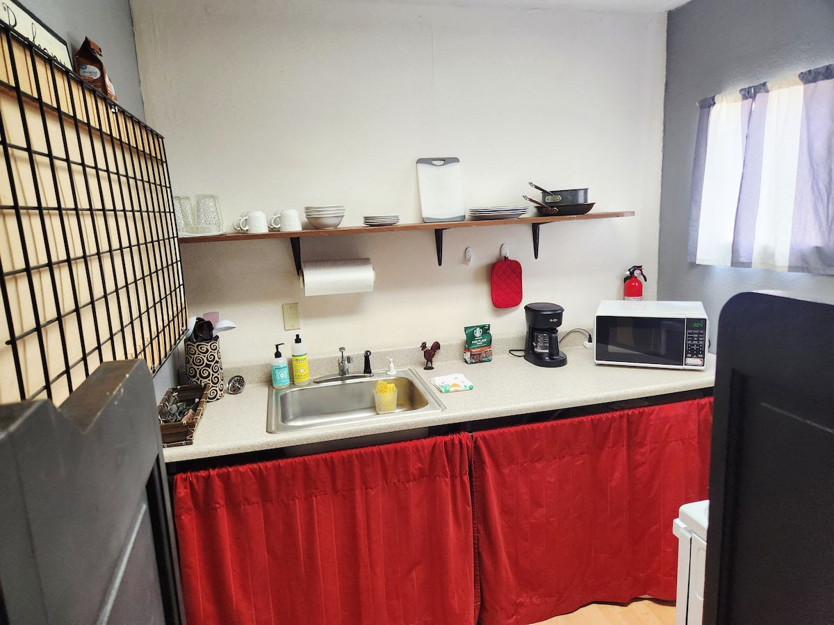 Step back into history, to the time of Geronimo and the Wild West. This original bunkhouse has been lovingly restored by a local artist . Geronimo had his last meal as a free man in the Cienega Ranch bunkhouse. The Cienega Ranch was homesteaded by our great great grandfather Augustus Chenowth. Experience the working ranch and the flavor of days gone by. Explore the family graveyard where Uncle Bob's arm is buried along with family and assorted outlaws.